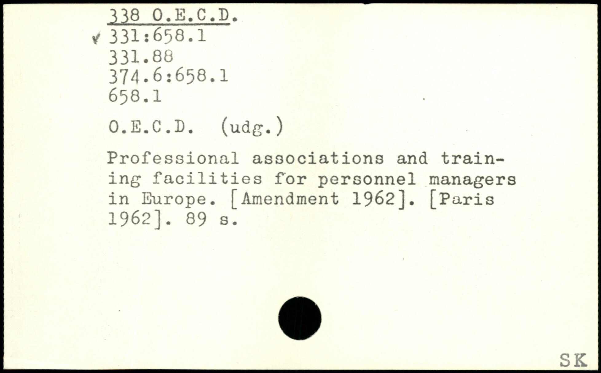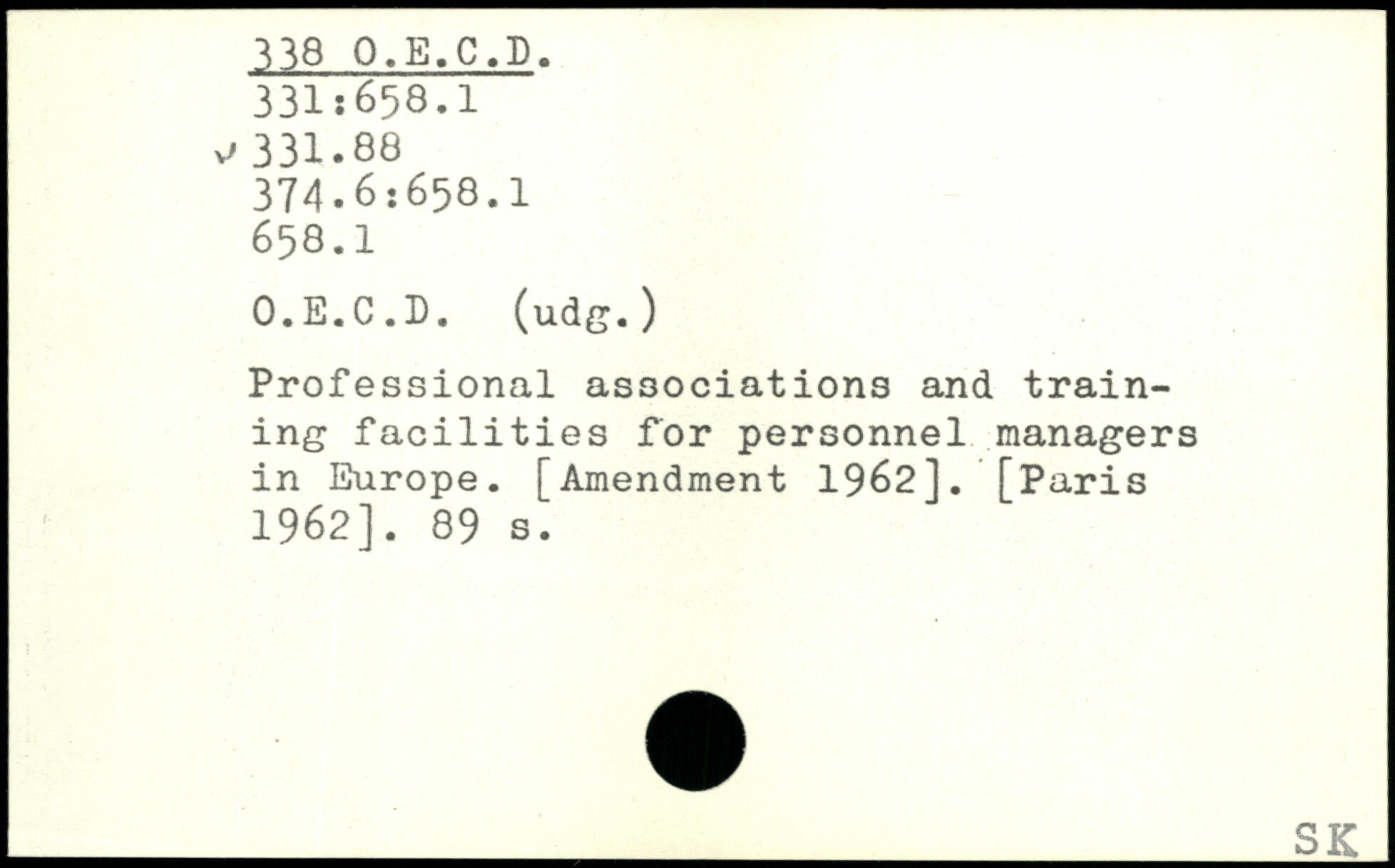 Professional associations and training facilities for personnel managers in Europe. [Amendment 1962]