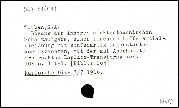 Lösung der inneren elektrotechnischen Schaltaufgabe, einer linearen Differential-, gleichung mit stufenartig inkonstanten koeffizienten, mit der auf Abschnitte erstreckten Laplace-Transformation.