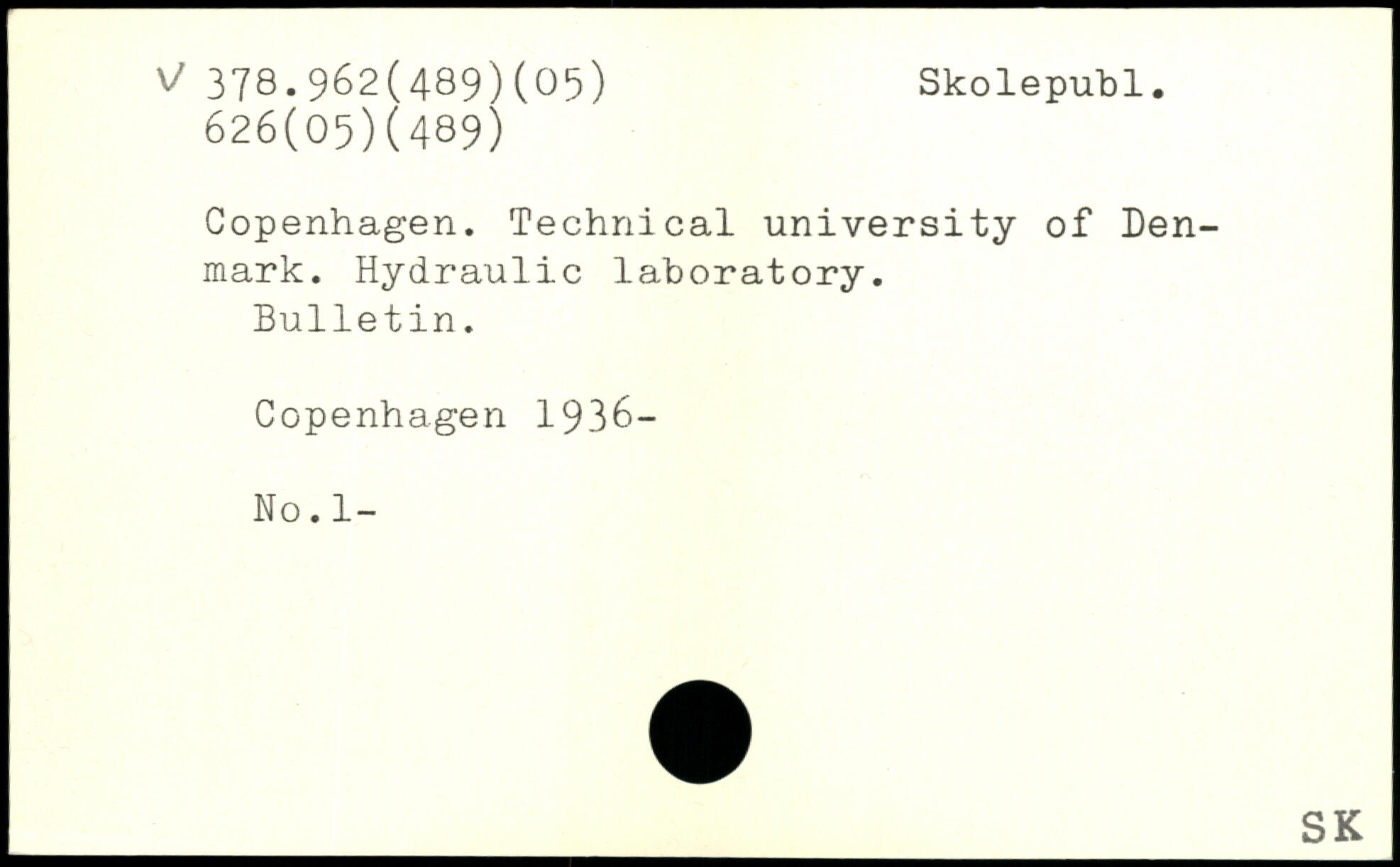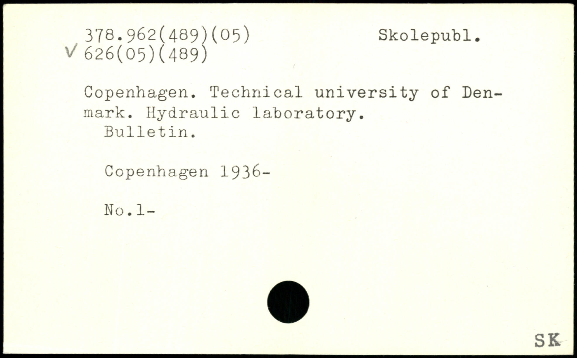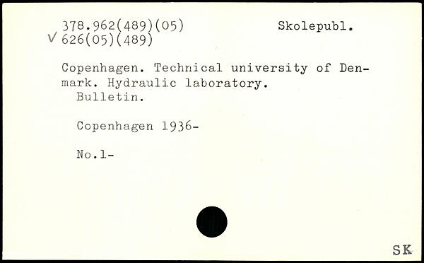 Copenhagen. Technical university of Denmark. Hydraulic laboratory. Bulletin.