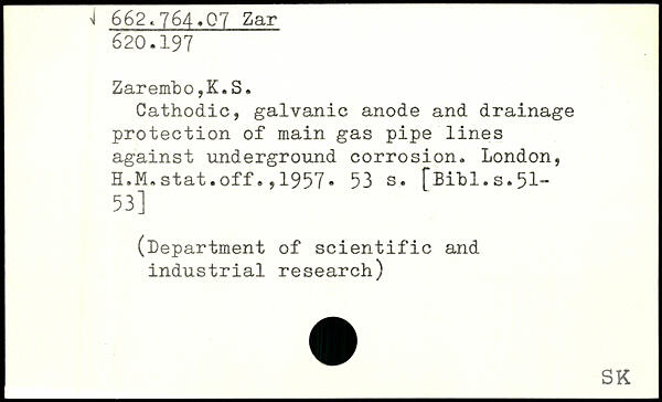 Cathodic, galvanic anode and drainage protection of main gas pipe lines against underground corrosion. London, H.M.stat.off.,1957.