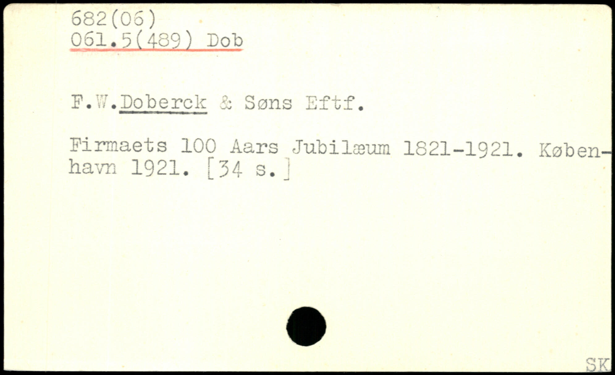061.6(489) lob F.W.jDoberck & Søns Eftf. Firmaets 100 Aars Jubilæum 1821-1921.