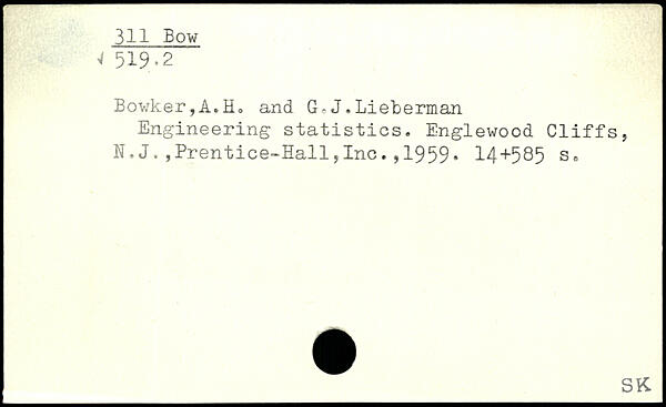 Bowker,A.H0 and G-J.Lieberman Engineering statistics.