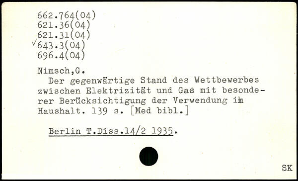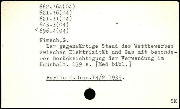 Der gegenwärtige Stand des Wettbewerbes zwischen Elektrizität und Gas mit besonderer Berücksichtigung der Verwendung im Haushalt.