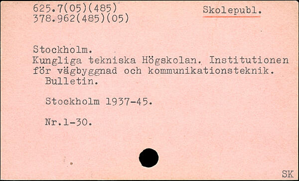 Kungliga tekniska Högskolan. Institutionen för vägbyggnad och kommunikationsteknik. Bulletin.