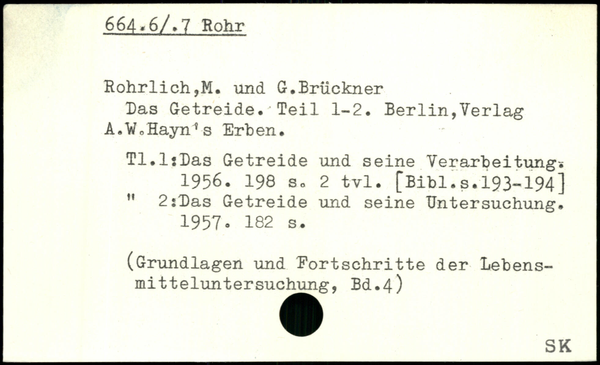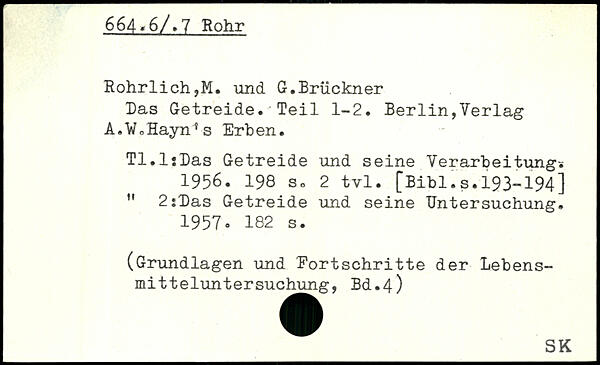 Das Getreide. Teil 1-2. Berlin,Verlag A.WoHayn'fs Erben. Tl.lsDas Getreide und seine Verarbeitung. 1956.