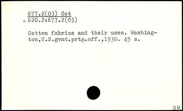Cotton fabrics and their uses, Washington,TJ#S.gvmt.prtg,off. ,1930. 45 _sJL