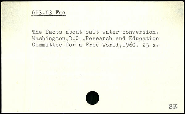 The facts about salt water conversion,, Washington,!) ,C , ,Research and Education Committee for a Free World,1960