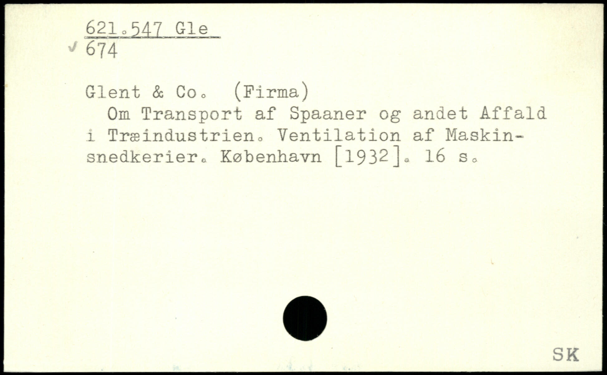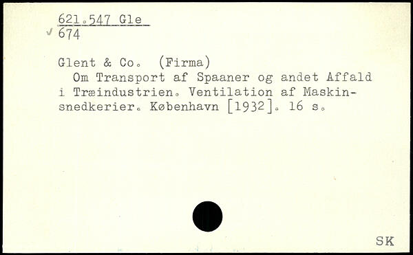 Glent & Co o (Firma) Om Transport af Spaaner og andet Affald i Træindustrien. Ventilation af Maskinsnedkeriero
