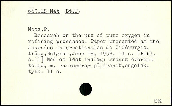 Research on the use of pure oxygen in refining processes. Paper presented at the Journées Internationales de Sidérurgie, Liege,Belgium,June 18, 1958o