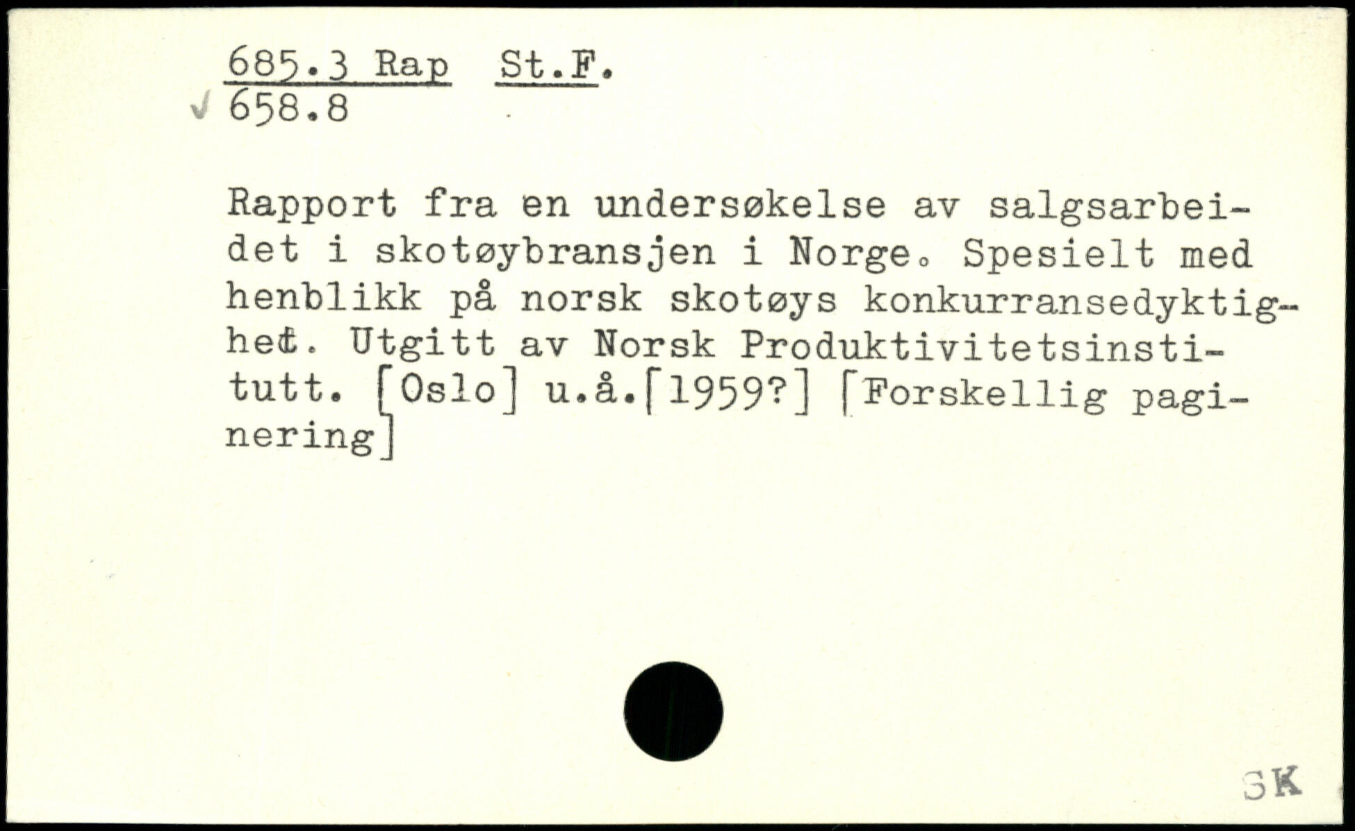 Rapport fra en undersokelse av salgsarbei-det i skotoybransjen i Norge, Spesielt med henblikk på norsk skotoys konkurransedyktighet. Utgitt av Norsk Produktivitetsinsti-tutt. [Oslo] u.å. j~1959?] [Forskellig paginering]