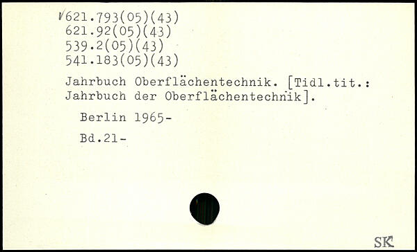 Jahrbuch Oberflächentechnik. [Tidl.tit.: Jahrbuch der Oberflächentechnik].