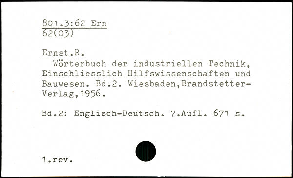 Wörterbuch der industriellen Technik, Einschliesslich Hilfswissenschaften und Bauwesen.