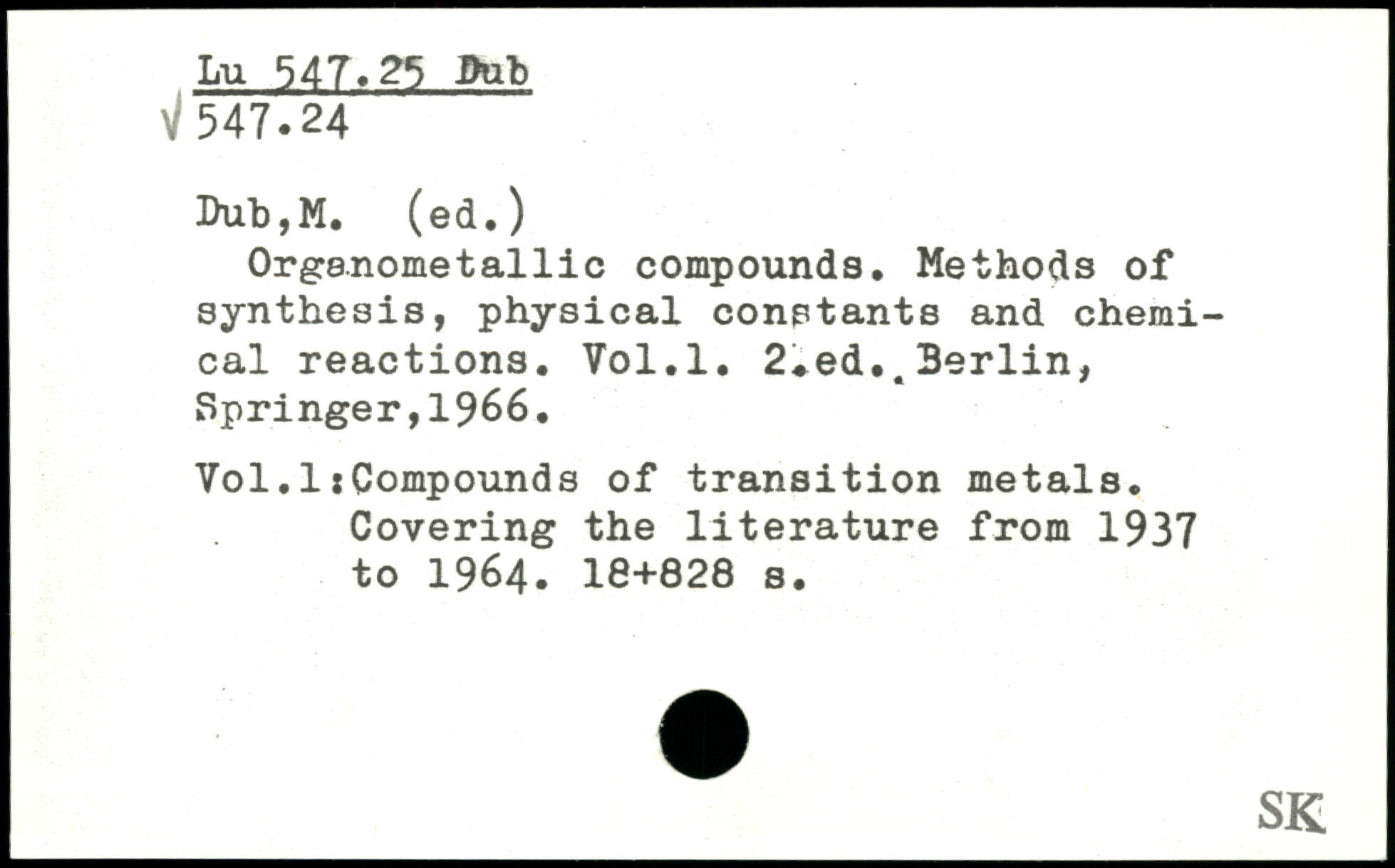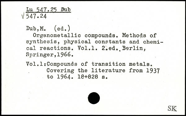 Orgenometallic compounds. Methods of synthesis, physical constants and chemical reactions.