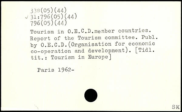 Tourism in O.E.C.D.member countries. Report of the Tourism committee.