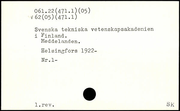 Svenska tekniska vetenskapsakademien i ^inland. Meddelanden.