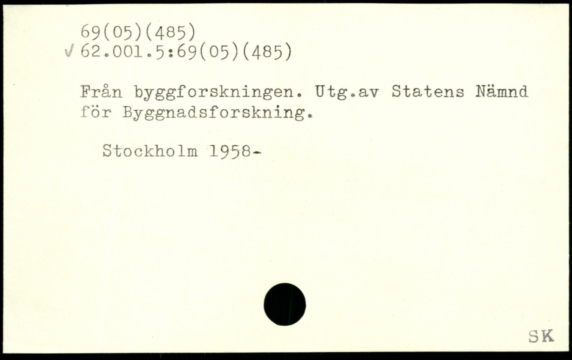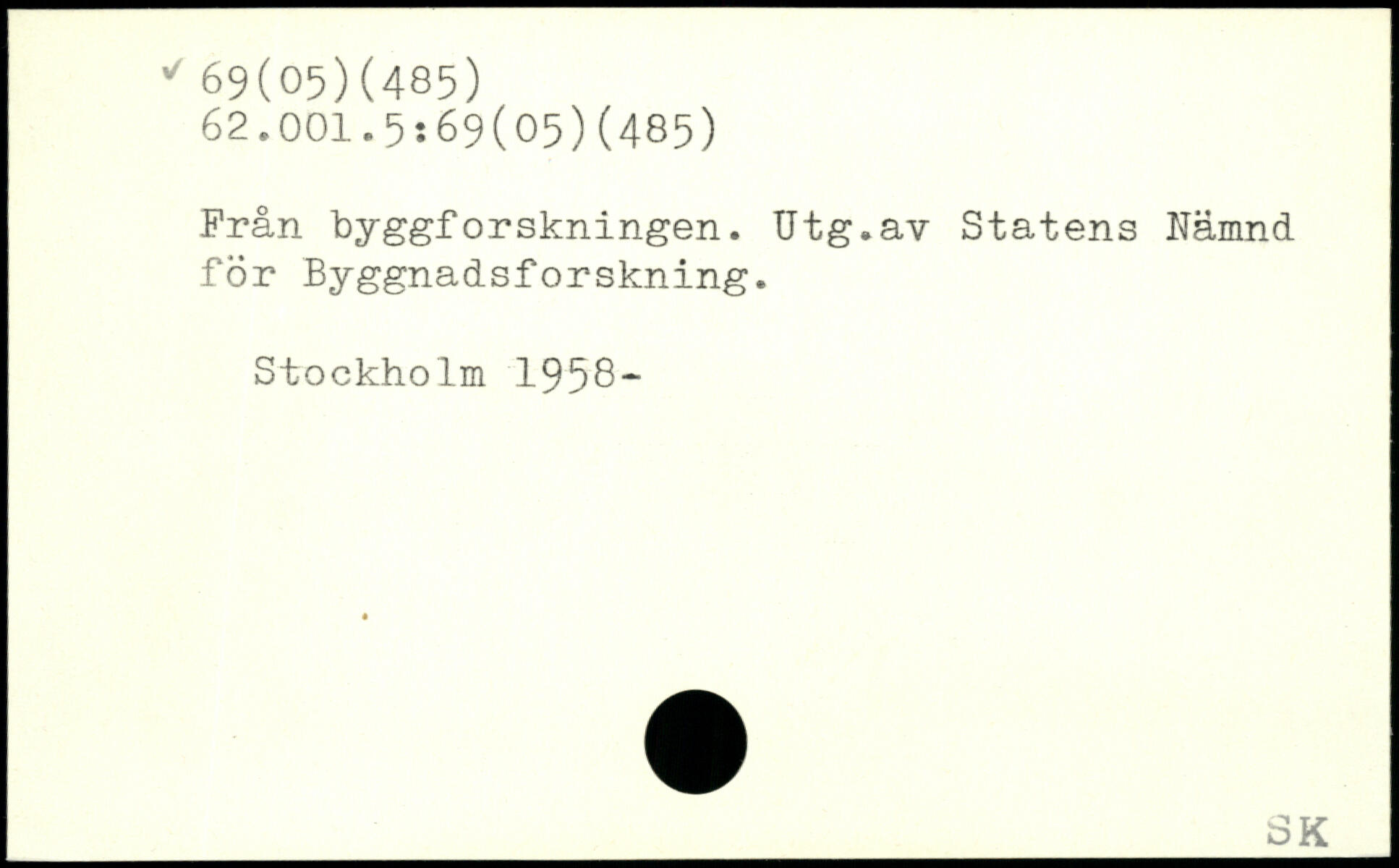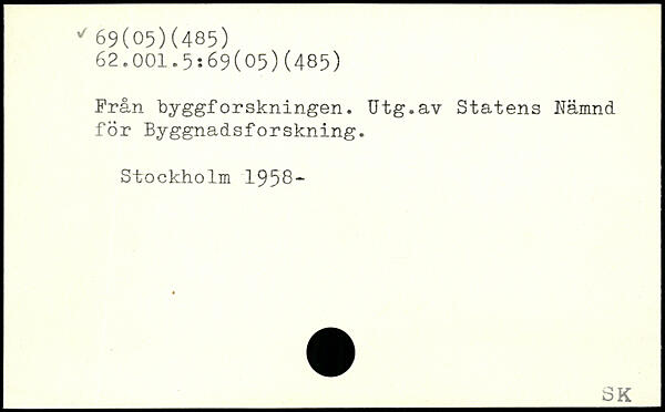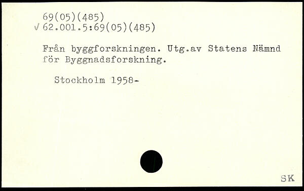Från byggforskningen. Utg.av Statens Nämnd för Byggnadsforskning.