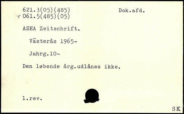 ASEA Zeitschrift. Vasterås 1965-Jahrg.10- Den løbende årg.udlånes ikke.