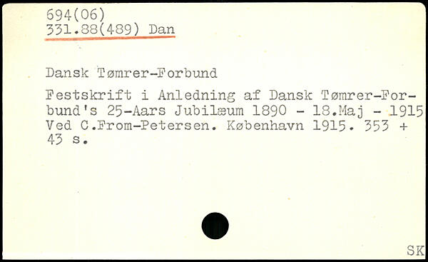 Pestskrift i Anledning af Dansk Tømrer-Por-bund’s 25-Aars Jubilæum 1890 - 18.Maj - 1915 Ved C.Prom-Petersen.