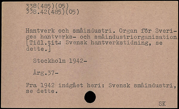 Hantverk och småindustri. Organ f.ör Sveriges hantverks- och småindustriorganisation [Tidl.tit.: Svensk hantverkstidning, se dette. ]