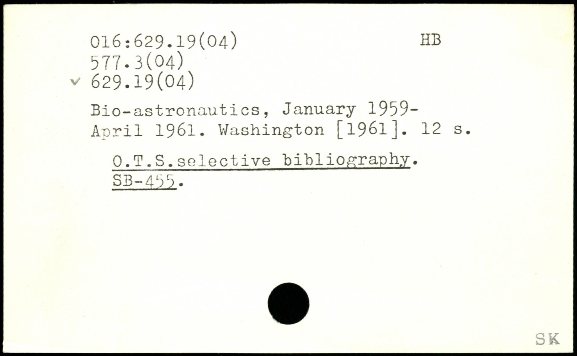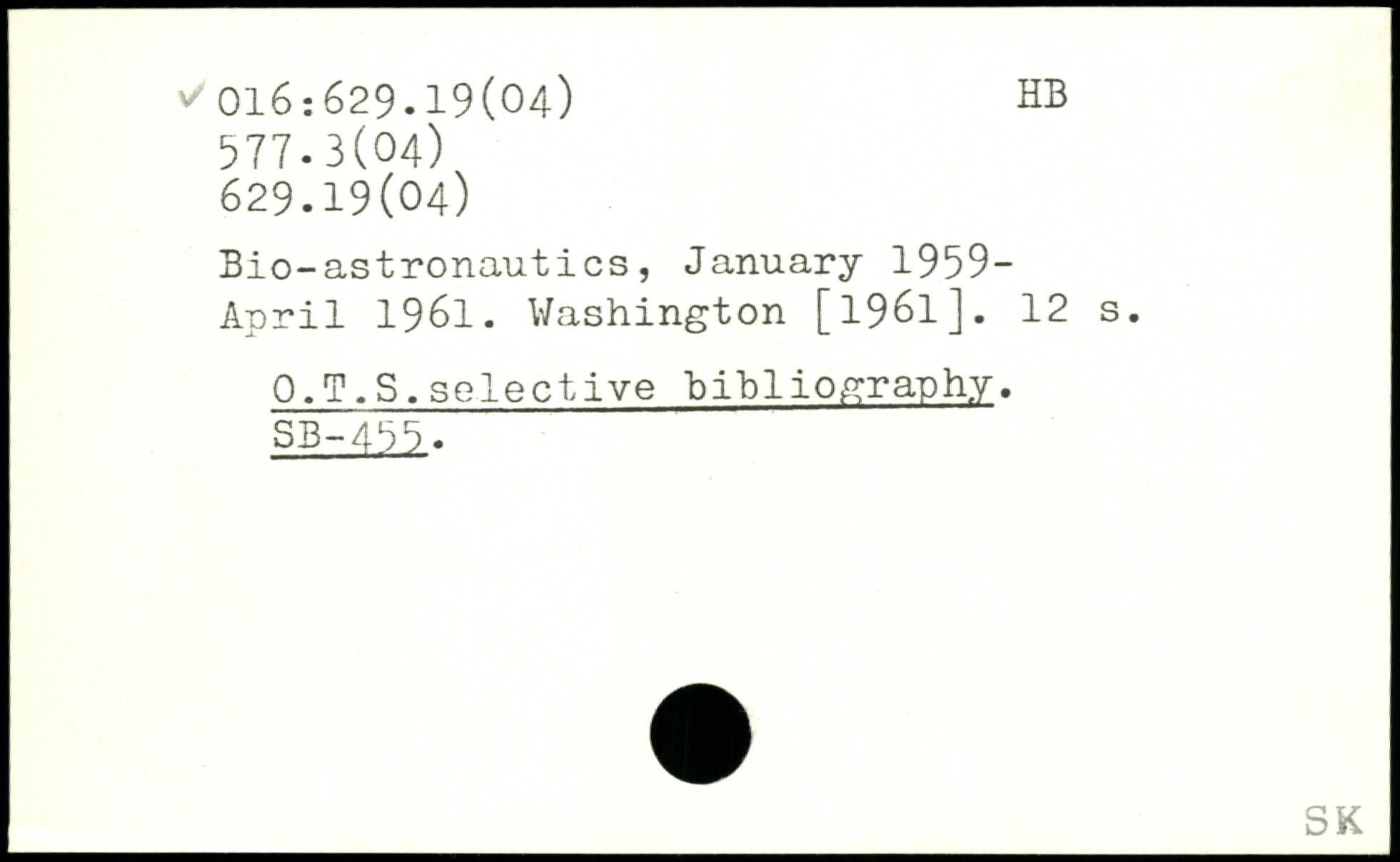 Bio-astronautics, January 1959-April 1961.