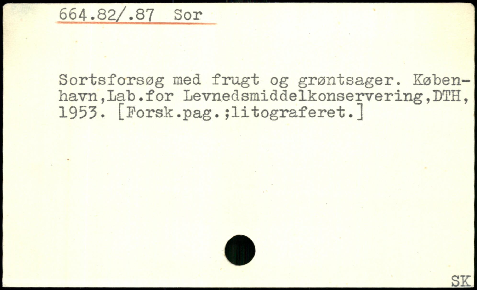 Sortsforsøg med frugt og grøntsager. København, Lab.for