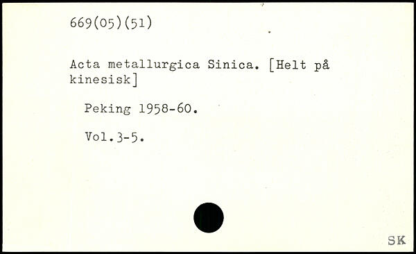 Acta metallurgica Sinica. [Helt på kinesisk] Peking 1958-60.