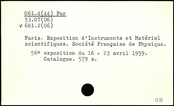 Pariso Exposition d-1 Instruments et Matériel scientifiques. Société Française de Physique. 56e exposition du 16 - 23 avril 1959, Catalogue.