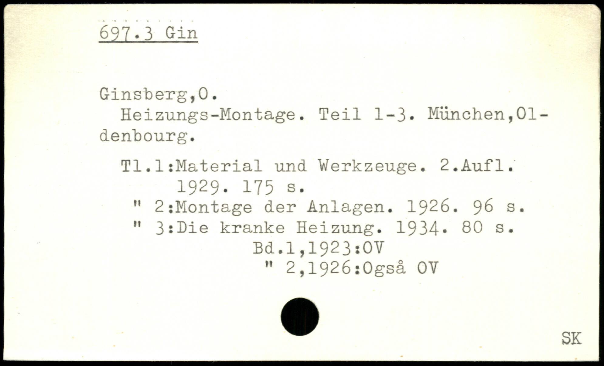 Heizungs-Montage. Teil 1-3. München,Oldenbourg. Tl.1ïMaterial und Werkzeuge.