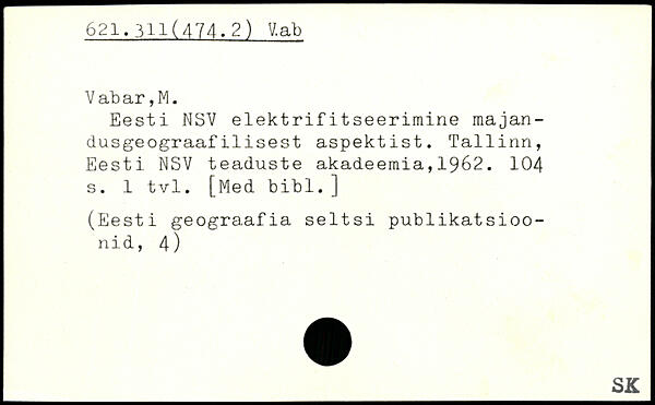 Eesti NSY elektrifitseerimine majan-dusgeograafilisest aspektist.