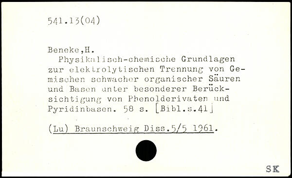 Physika ! i sch-cheini cone Grundlagen zur elektrolytischen Trennung von Gemischen schwacher organischer Säuren und Basen unter besonderer Berücksichtigung von Pbenolderivaten und Pyridinbasen.