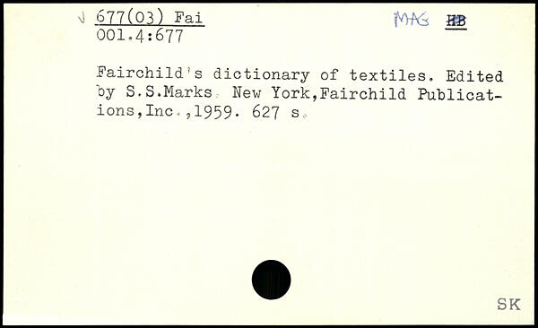 -Fairchild's dictionary of textiles. Edited oy S,S.