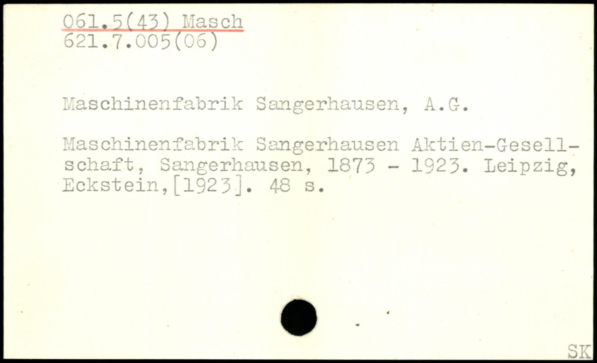 Sted: Maschinenfabrik Sangerhausen Aktien-Gesell-schaft