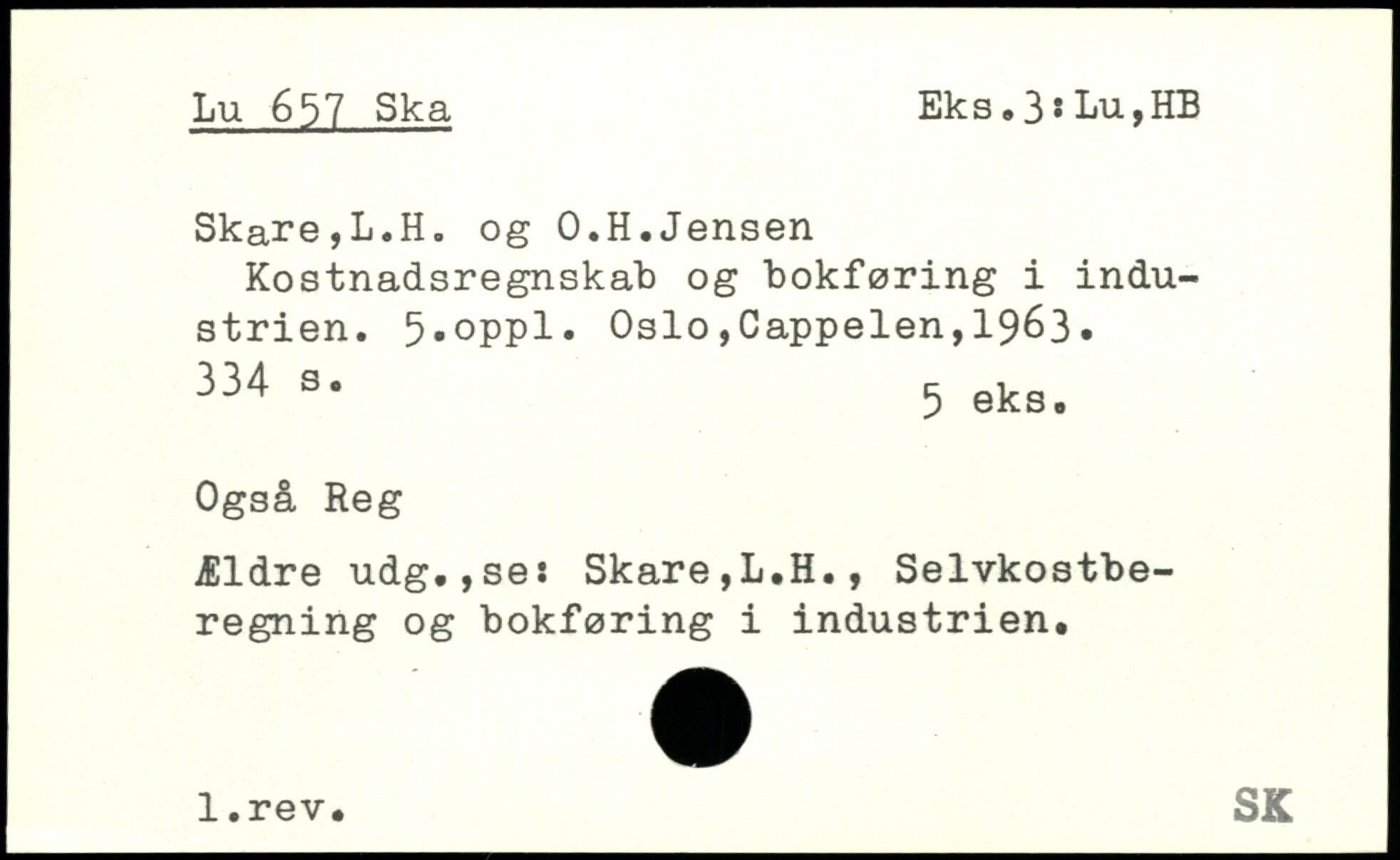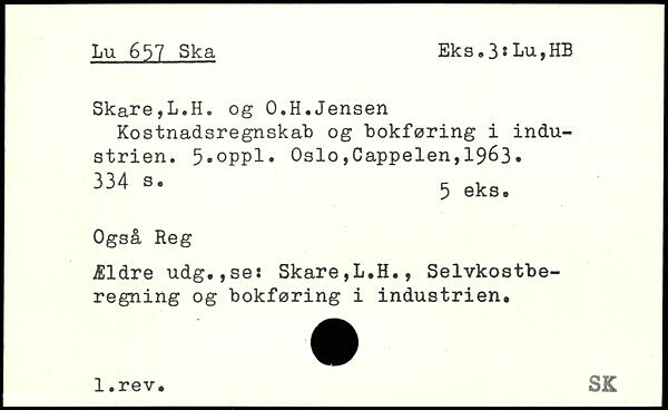 Kostnadsregnskab og bokføring i industrien. 5,oppl. Oslo,Cappelen,19é3.
