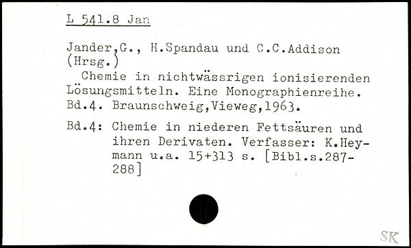 ^Chemie in nichtwässrigen ionisierenden Lösungsmitteln. Eine Monographienreihe.