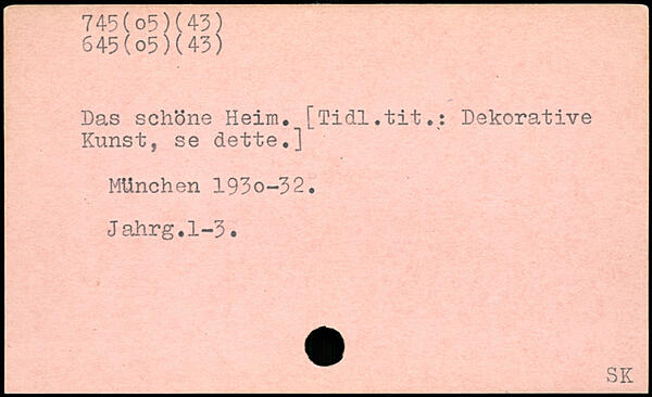 Das schöne Heim. [Tidl.tit.: Dekorative Kunst, se dette,] München 193o-32. Jahrg.1-3.