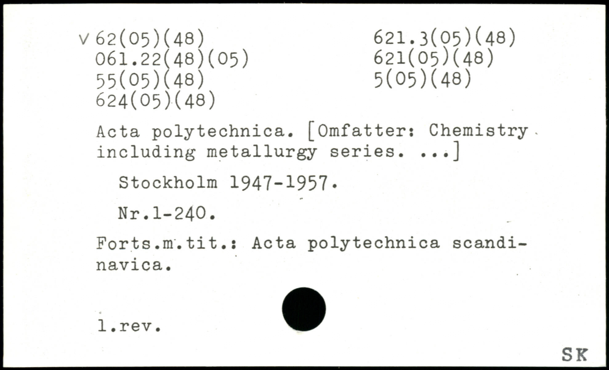 Acta polytechnics. [Omfatter: Chemistry, including metallurgy series. ...]