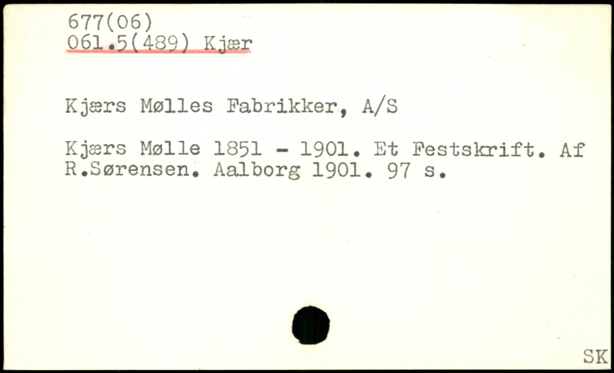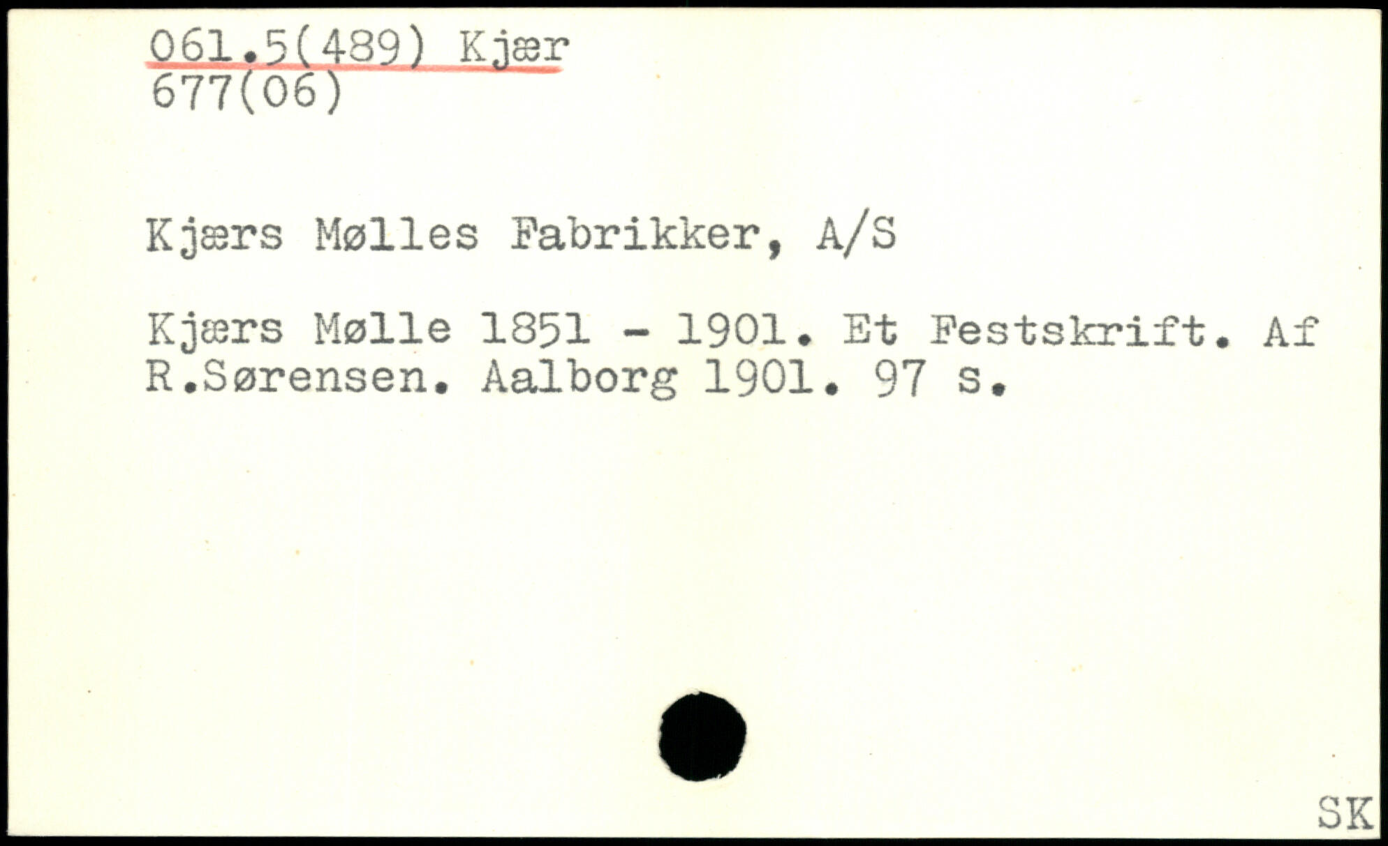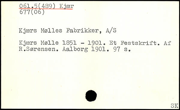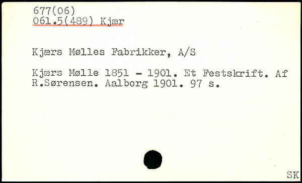 Kjærs Mølles Fabrikker, A/S Kjær s Mølle 1851 - 1901. Et Festskrift. Af R.Sørensen.
