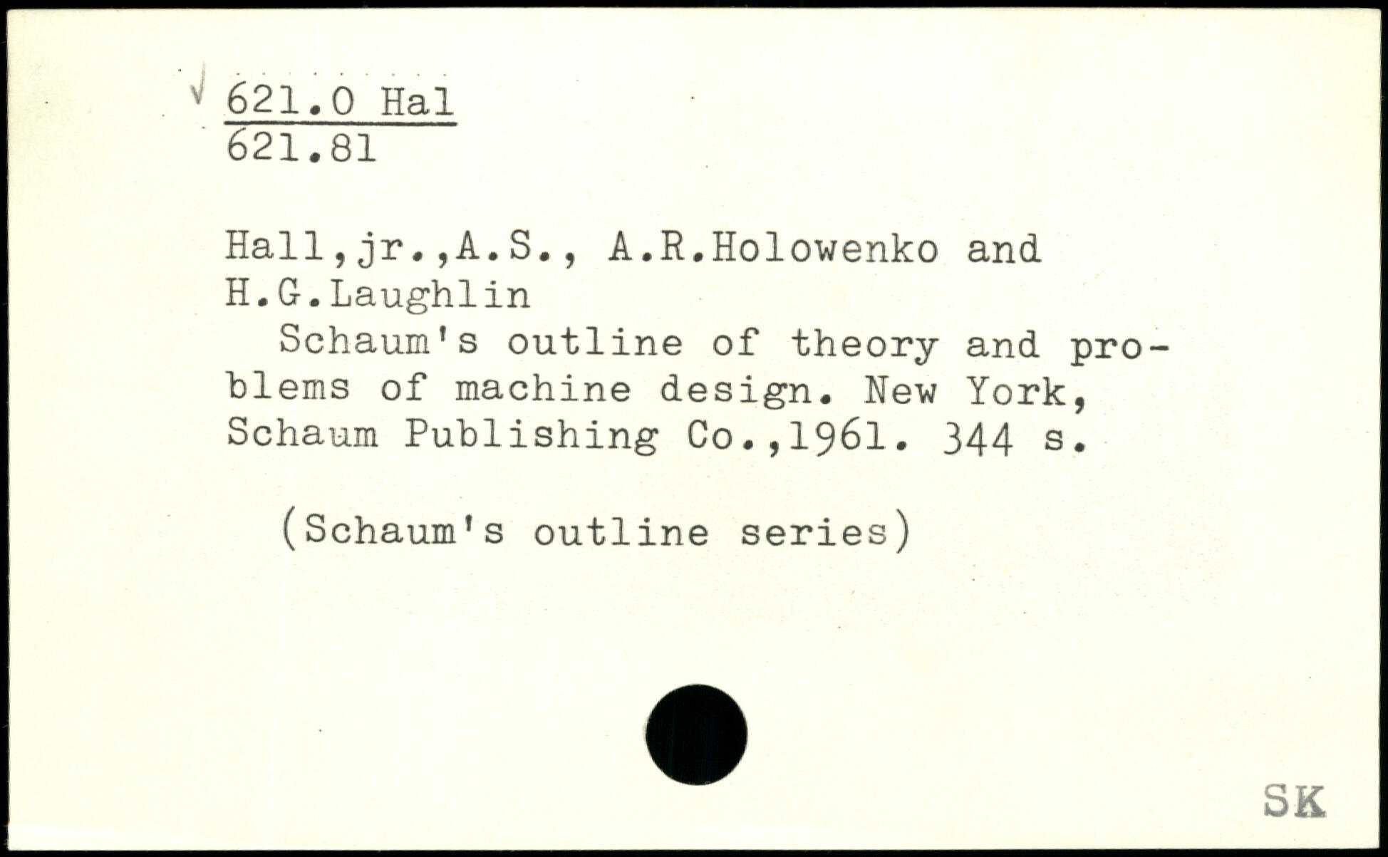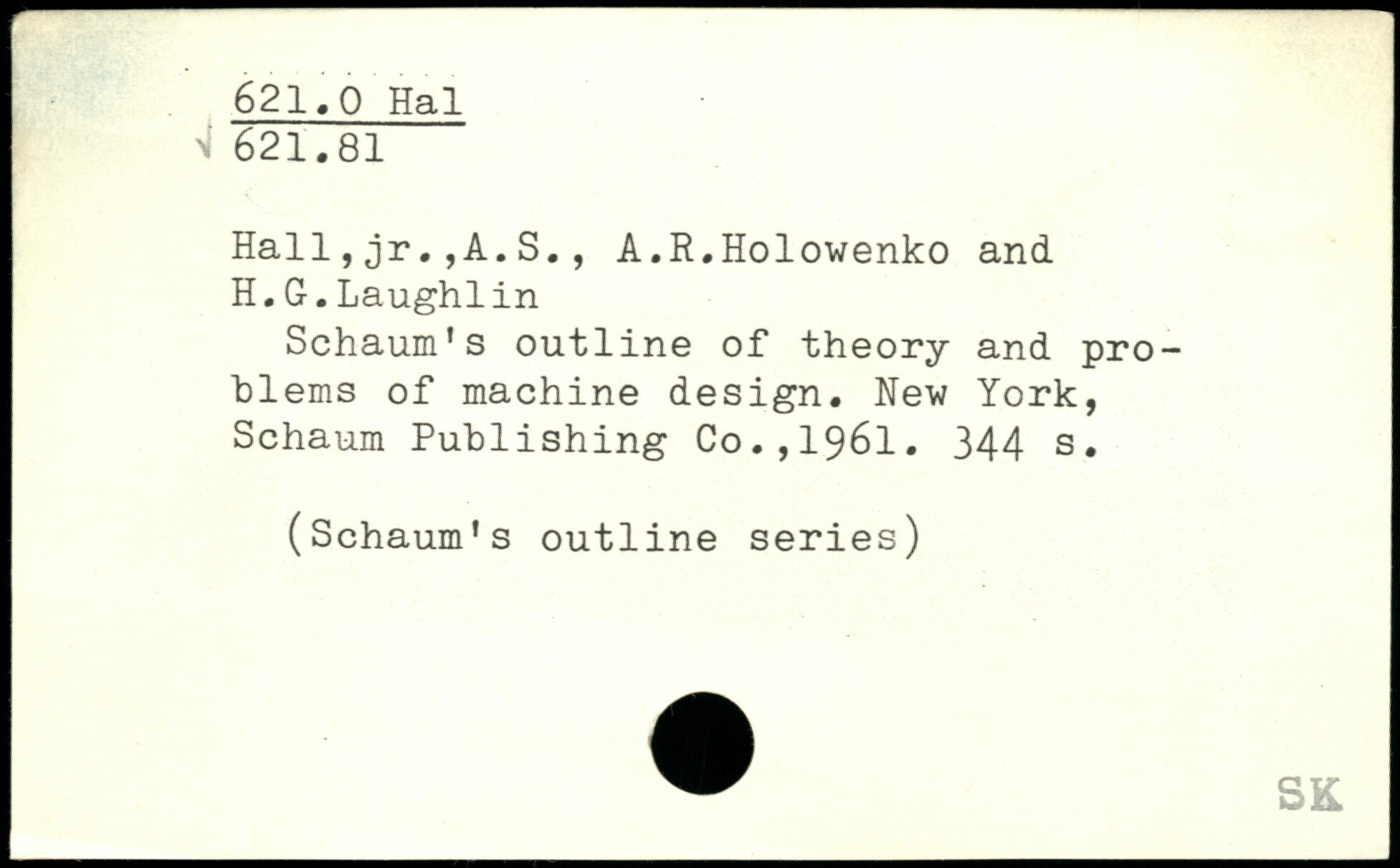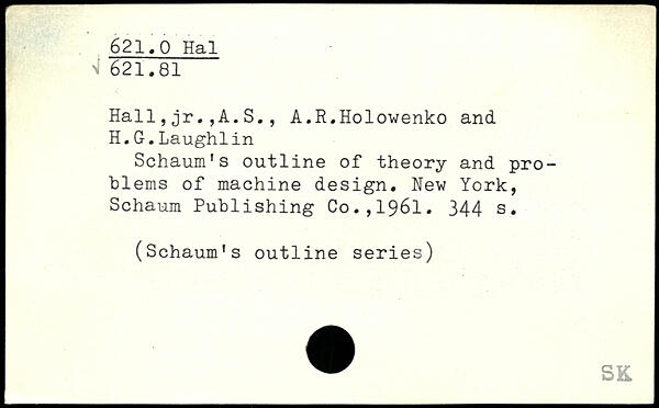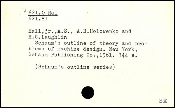 Hall,jr.,A.S., A.R.Holowenko and H.G.Laughlin Schaum's outline of theory and problems of machine design.