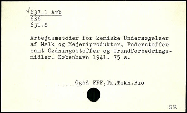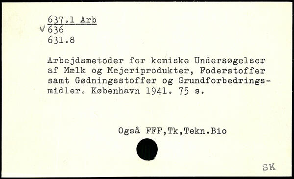 Arbejdsmetoder for kemiske Undersøgelser af Mælk og Mejeriprodukter, Foderstoffer samt Gødningsstoffer og Grundforbedrings-midler,