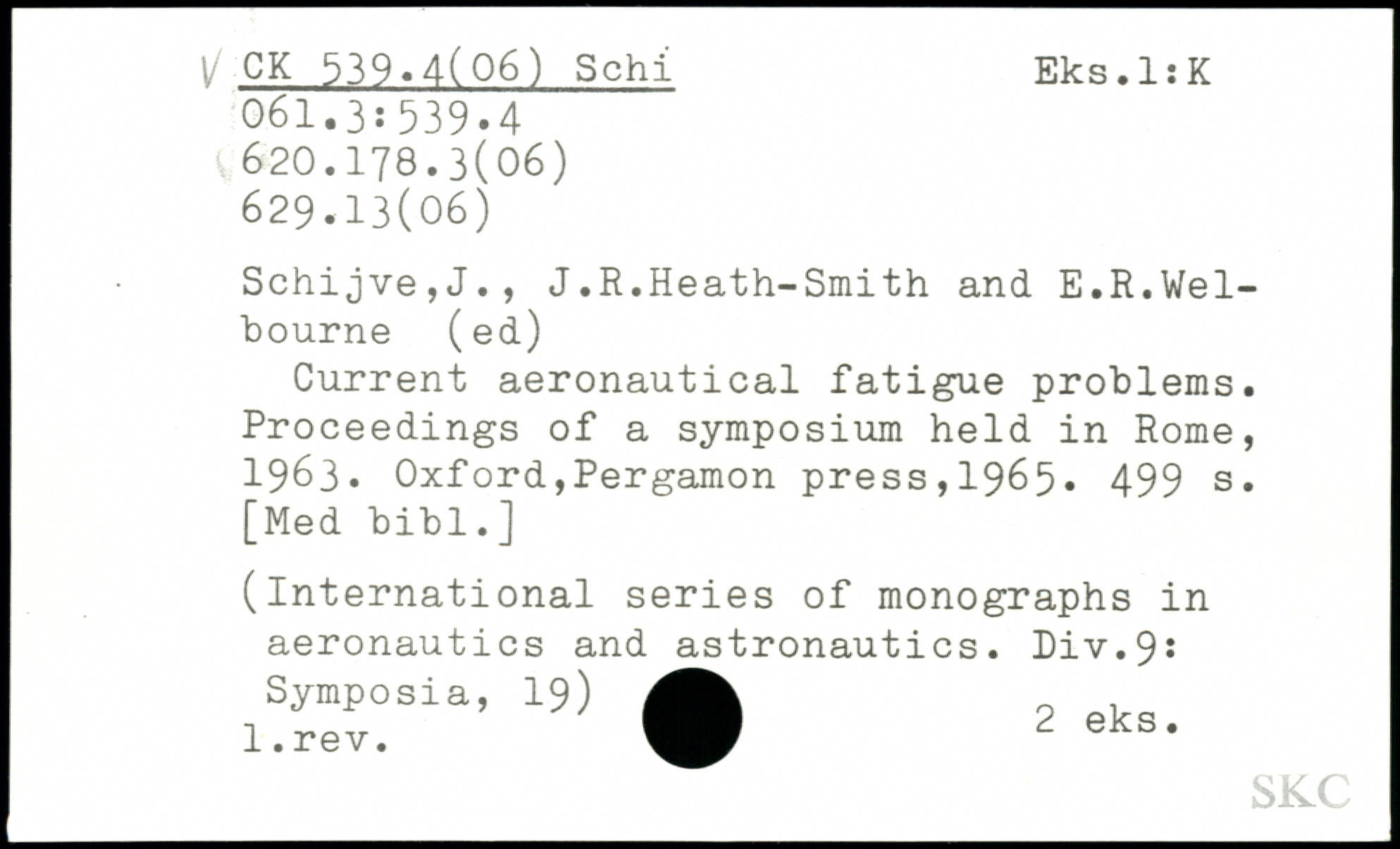 UDK: 539.4(06) Schl, 061.3:539.4, 620.178.3(06), 629.13(06)