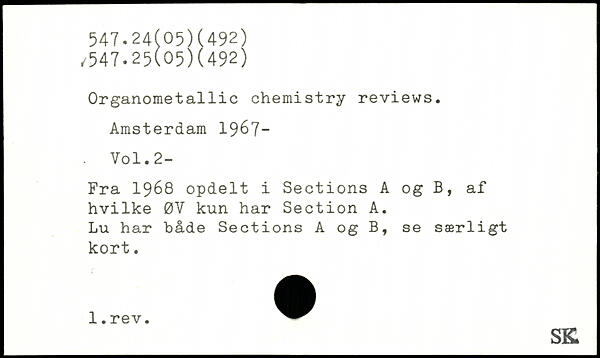 Organometallic chemistry reviews. Amsterdam 19^7-