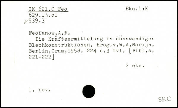 Die Kräfteermittelung in dünnwandigen Blechkonstruktionen. Hrsg.v.W.A,Marijn.