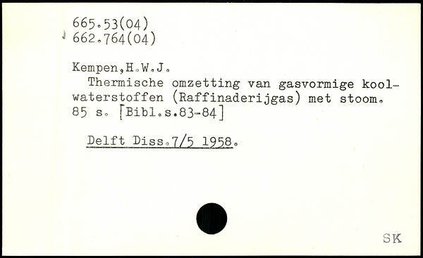 Kempen, EL Wo J0 Thermische omzetting van gasvormige kool-waterstoffen (Raffinaderijgas) met stoom