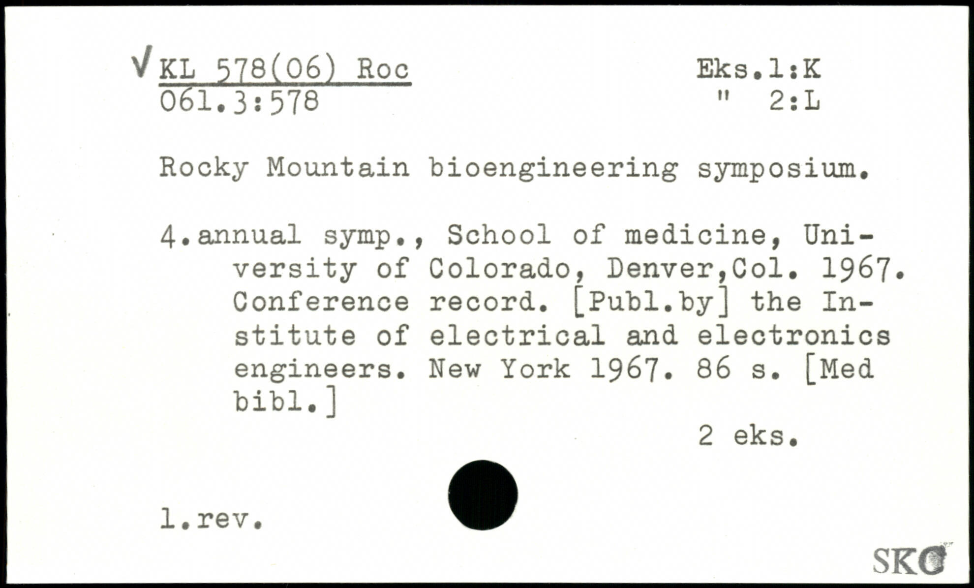 Rocky Mountain bioengineering symposium. 4.annual symp., School of medicine, University of Colorado, Denver,Col. 1967. Conference record.