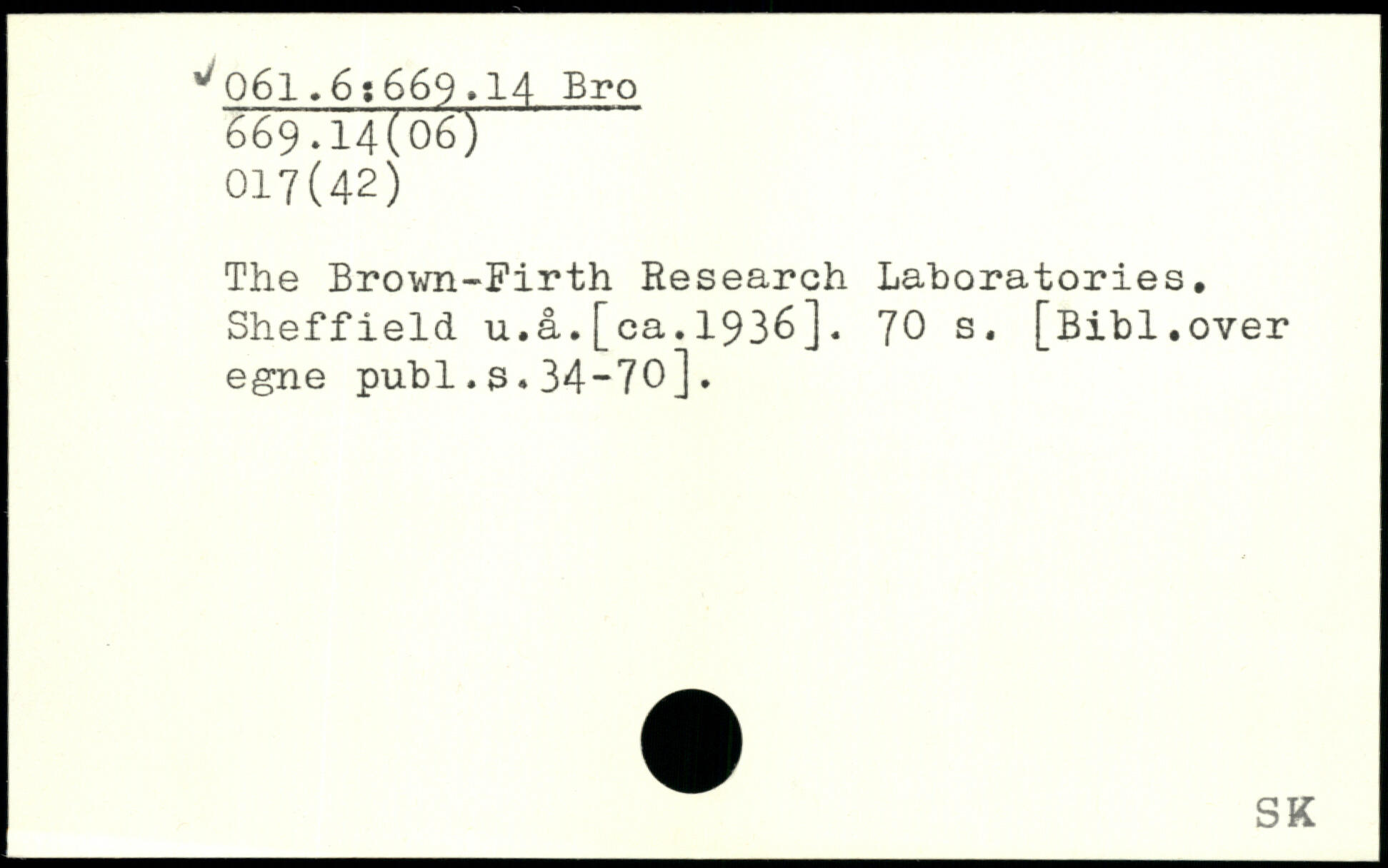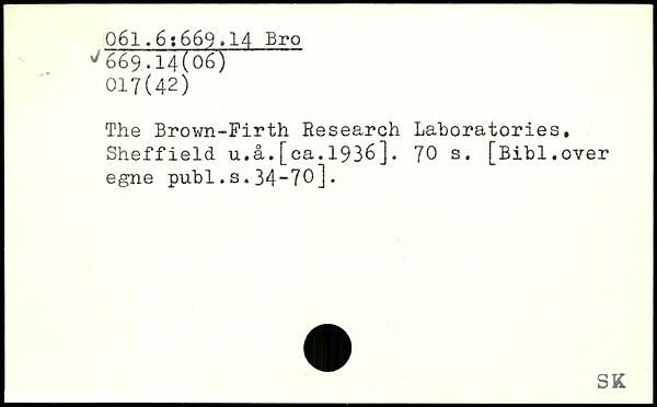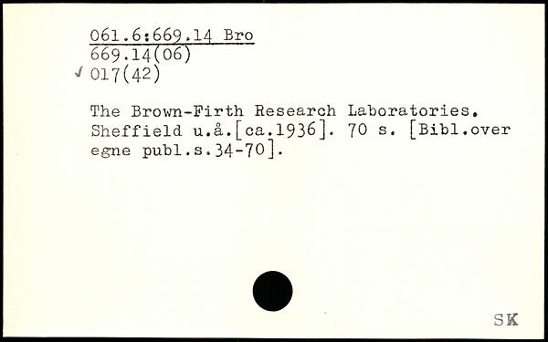 The Brown-Firth Research Laboratories. Sheffield u.a.[ca.1936].