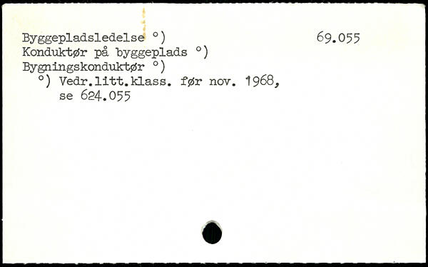 ' ■ ■■ ii.ii mii ' ......i.....- ■ m Byggepladsledelse .) 69.055 Konduktør på byggeplads .) Bygningskonduktør .) .) Vedr.litt.klass. før nov. 1968, se 624.055