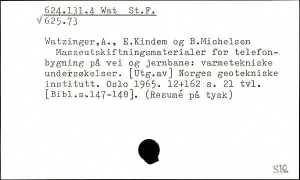 Masseutskiftningsmaterialer for telefon-bygning' på vei og jernbane: varmetekniske undersøkeiser. [Utg.av] Norges geotekniske institutt. Oslo 1965