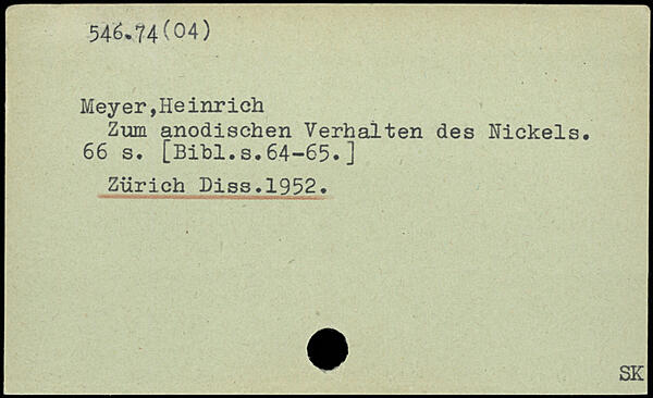 Meyer,Heinrich Zum anodischen Verhalten des Nickels.