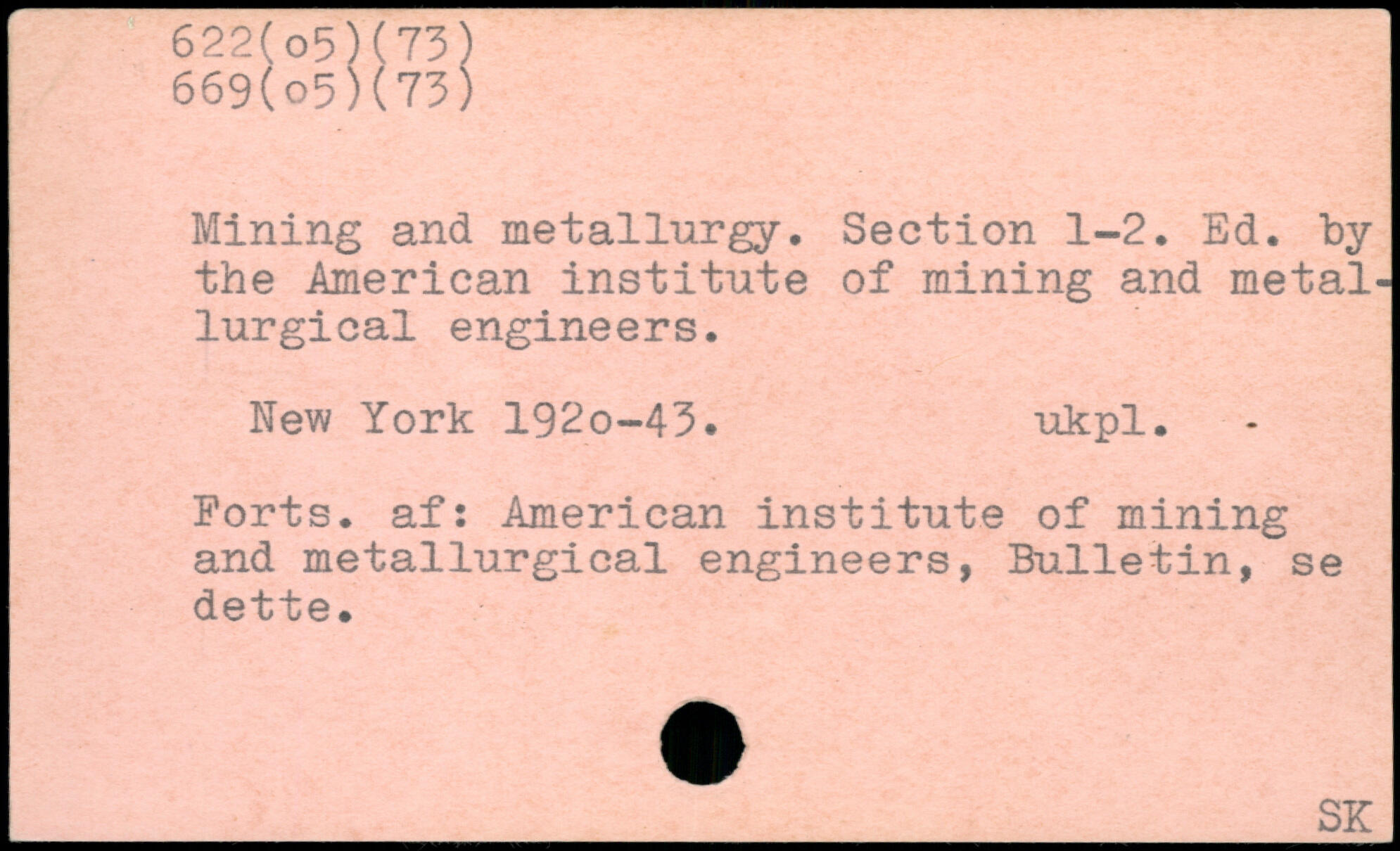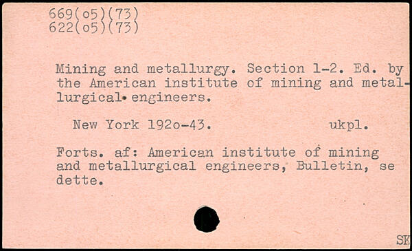 Mining and metallurgy. Section 1-2. Ed. by the American institute of mining and metallurgical engineers. New York 192o-43. ukpl. Ports, af: American institute of mining and metallurgical engineers, Bulletin, se dette.