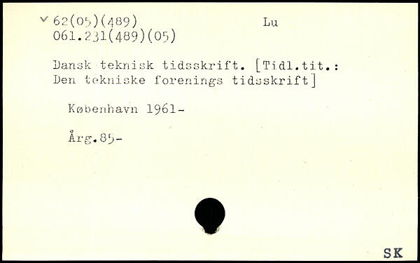 Dansk teknisk tidsskrift. [Tidl.tit.: Den tekniske forenings tidsskrift]